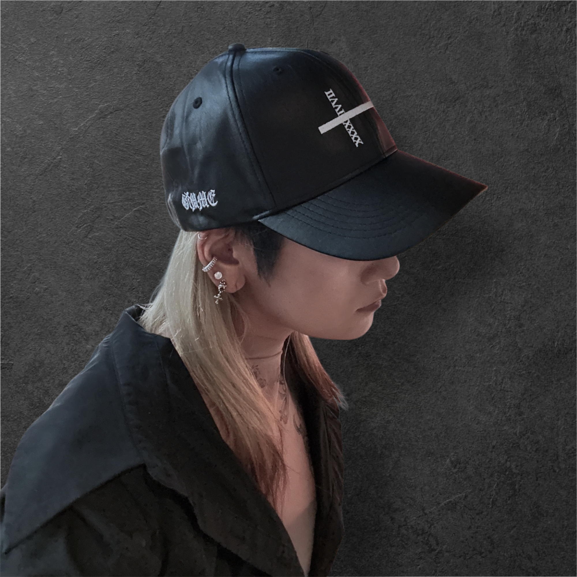 高級な合成皮革のPUレザーを使用した、重厚感のあるキャップにホワイトでロゴをフロントとサイドに刺繍した合わせやすく、カッコよくきまるアイテム!