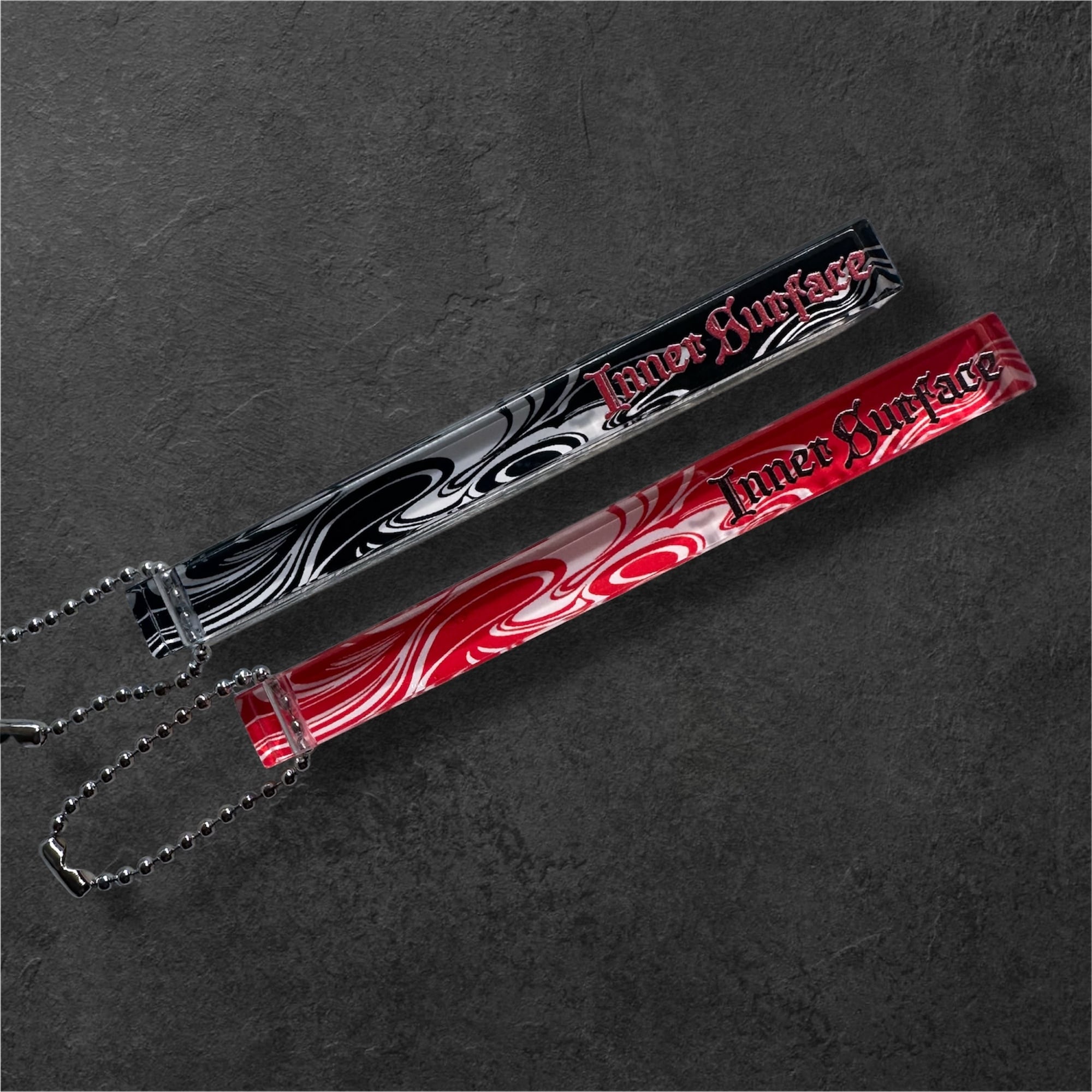 2025年に開催したdolly個展”INNER SURFACE STORY”の時から登場した、作品の中にも描かれたタバコの煙のうねりとdollyの代表作のタイトルをプリントしたホテルキーホルダーです。