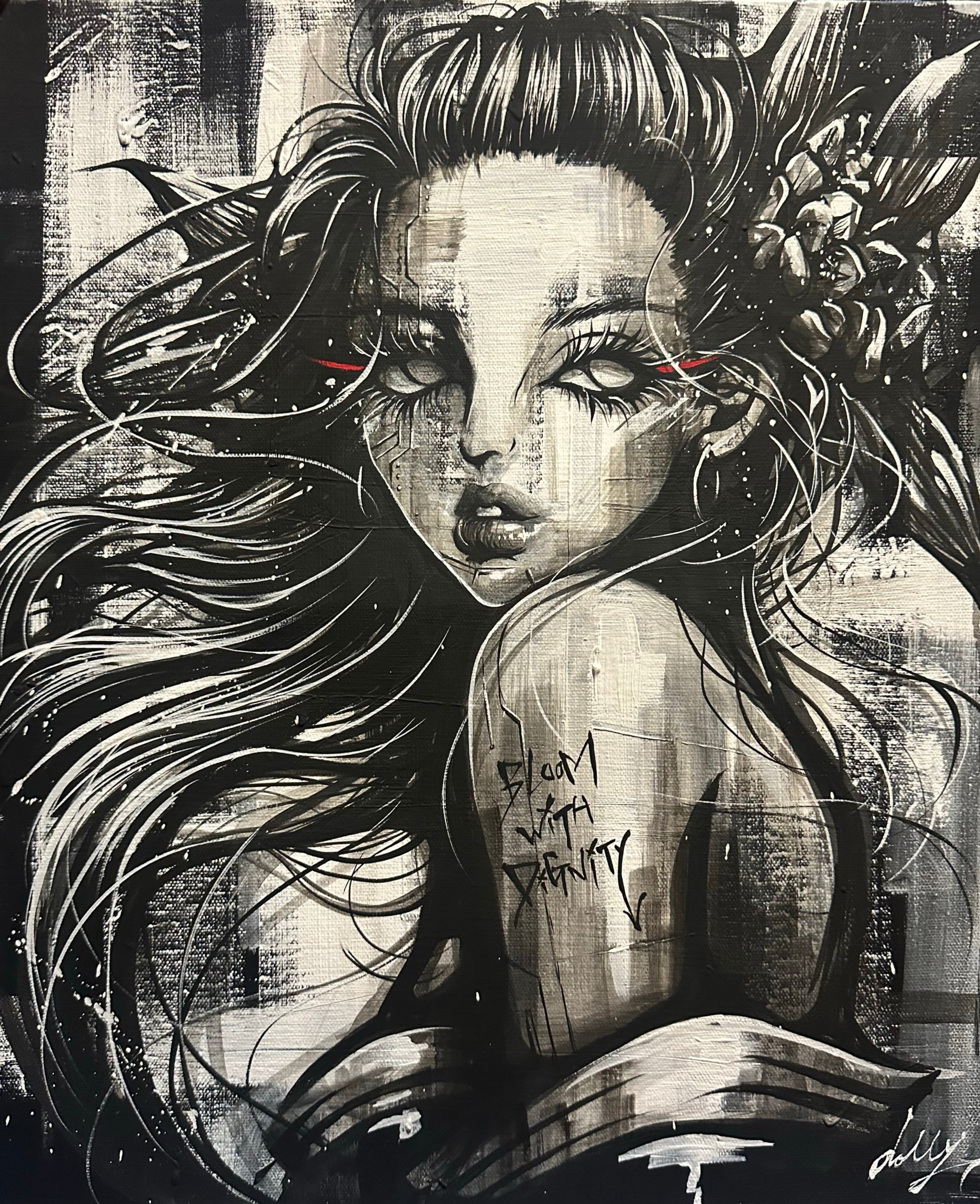 dollyの作品たちは誰もが経験する人と人の間に起きる感情や内なるものを1番親しみのある自分と同じくらいの等身大女性を中心に現代に生きる強く美しい戦士のように描き、テーマに色んな感情や時事問題を落とし込み描いたもの。