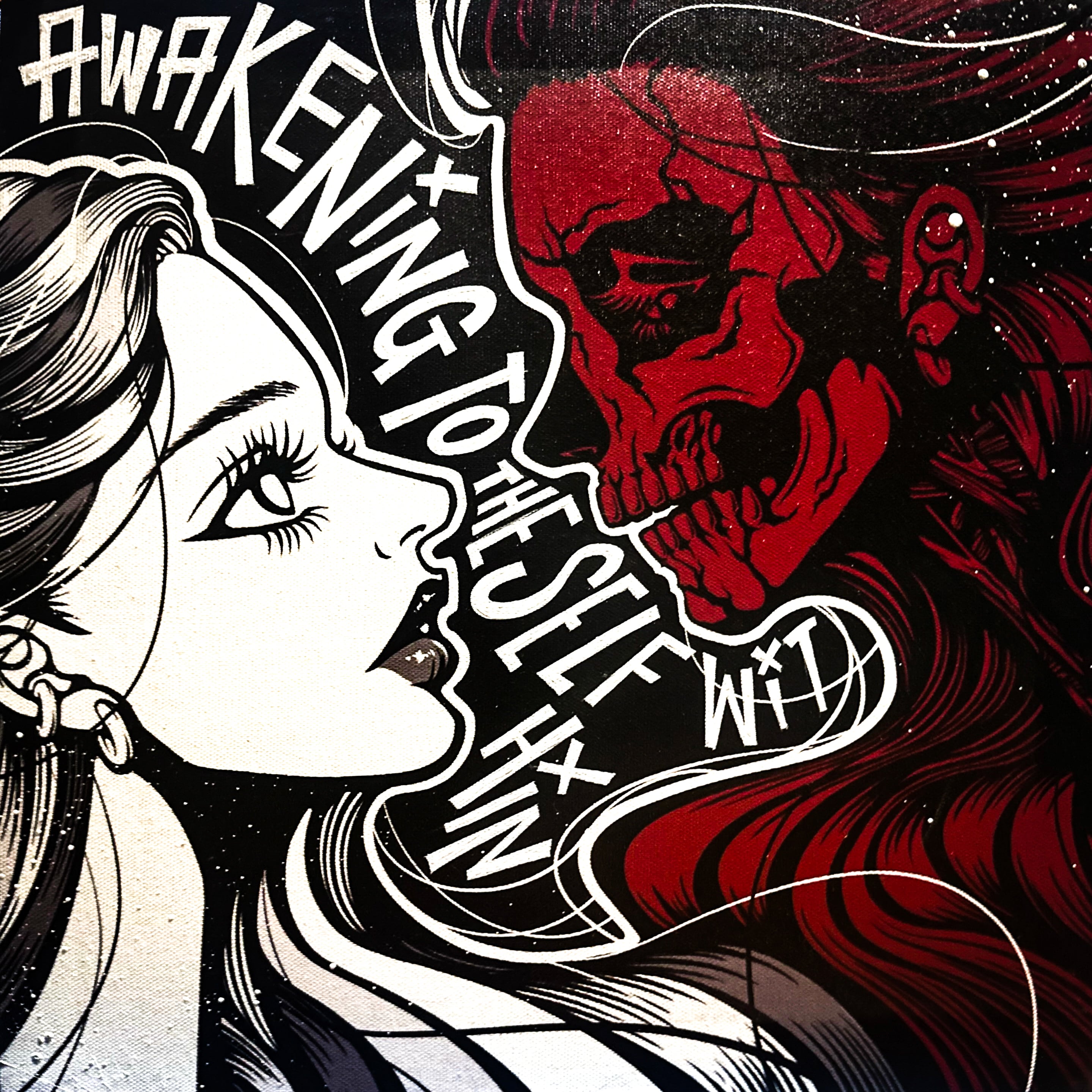 デジタルの作品をキャンバスにプリントしたものに、ポイントで手描きし、一点ものの作品として誕生しました。